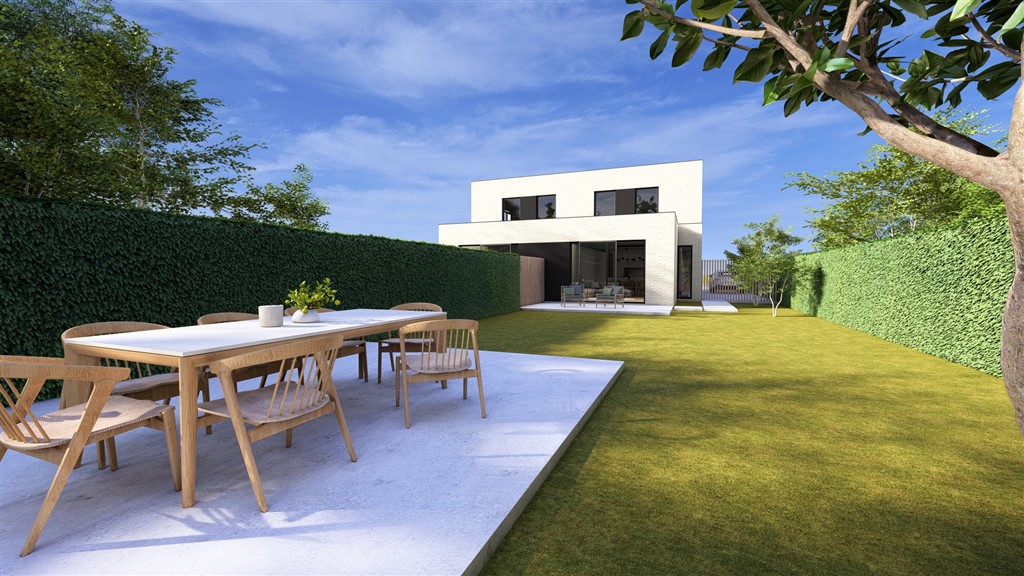 Twee energiezuinige nieuwbouwwoningen met 4 slaapkamers én 2 badkamers te koop op mooie zuidgerichte percelen van 4a76 (links) en 4a23 (rechts), voorzien van álle comfort : warmtepomp met actieve koeling, vloerverwarming, ventilatie, pv-panelen, maatkeuken, inloopdouches, dubbele lavabo. Afwerking kan volledig gekozen worden op maat. Binnendeuren (gelijkvloers) worden ook bréder uitgevoerd (toegankelijkheid).