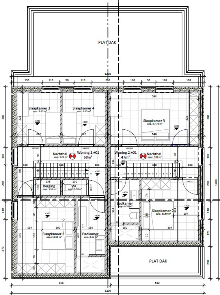 - Tegelvloer 90/90 (onder en boven), inclusief trap