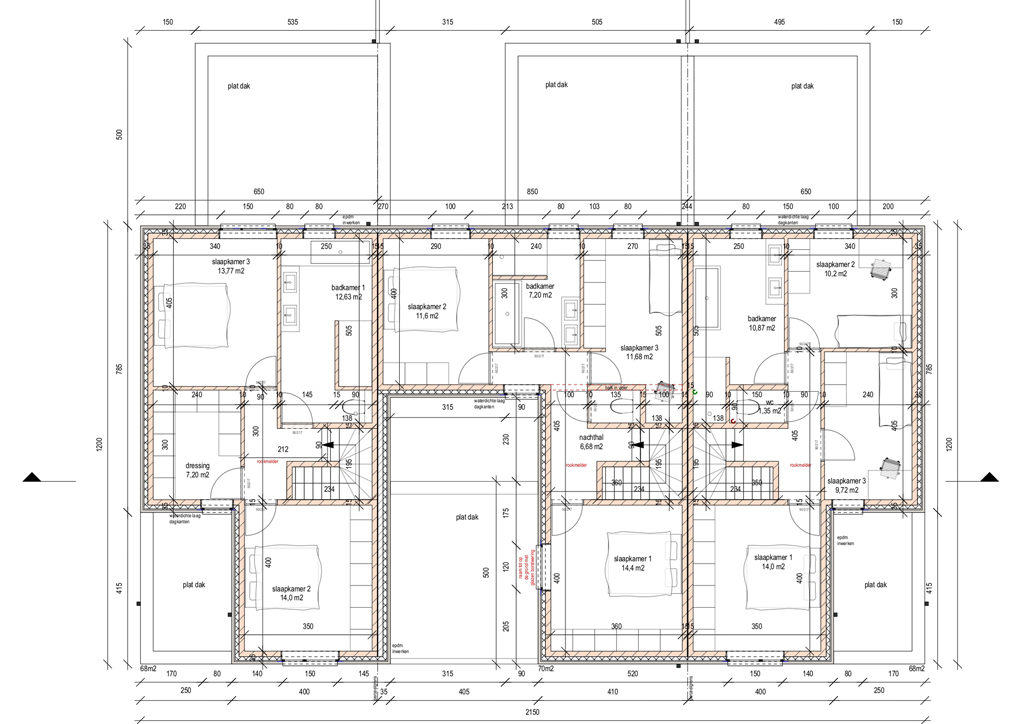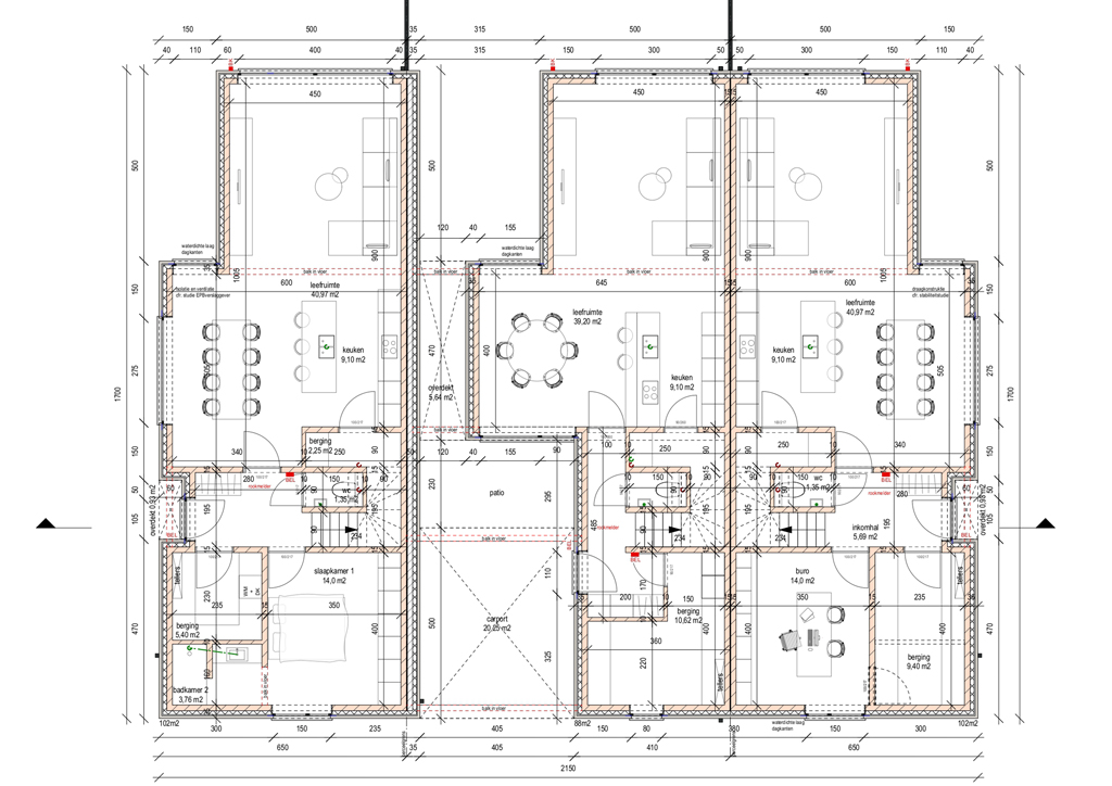 | Woonoppervlakte middelste woning | 158 m2 + overdekte carport 20 m2 |